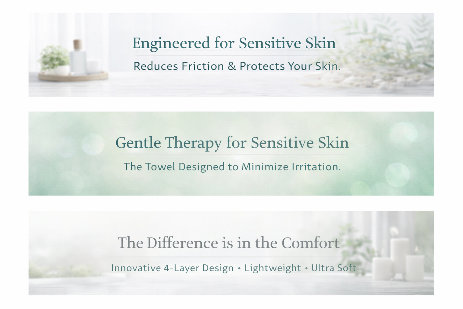 Our patented, lab-tested four-layer textile system is intentionally designed to reduce harsh friction, minimize drag, and support smoother, more protective post-wash results—especially for sensitive or easily irritated skin. Where conventional towels grow heavy and abrasive when saturated, Invigor maintains balance, buoyancy, and structural integrity from the first rinse through the final dry.