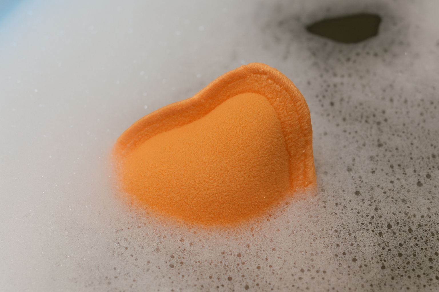 Unlike standard washcloths that quickly saturate and sink, Invigor’s layered design helps retain air and structure, allowing it to remain light and responsive during use. This buoyancy supports better control, less strain, and a more comfortable routine from start to finish.